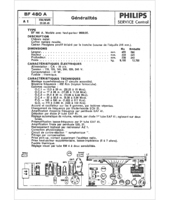 Schéma Philips BF480A, Radiola RA 84 a