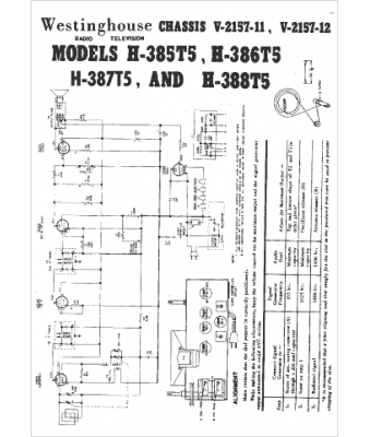 Schéma Westinghouse H-359T5, H-360T5, H-365T5, Westinghouse H-366T5, H-367T5, Westinghouse H-374T5, H-375T5, Westinghouse V-2157, V-2157U, V-2157-1, V-2157-1U, V-2157U